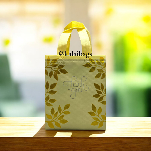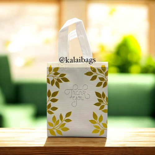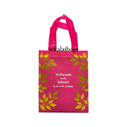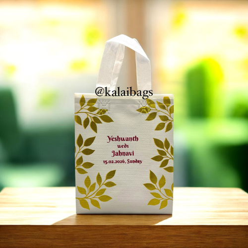 Premium Metallic Glittering Leaf Design and Matte Finished Non Woven Bag.